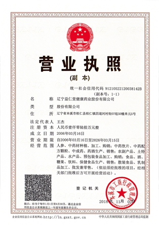 遼寧益仁堂健康藥業(yè)股份有限公司成立于2006年,注冊(cè)資本1060萬元,占地面積23677平方米。企業(yè)走公司加農(nóng)戶加合作社加生產(chǎn)銷售為一體的產(chǎn)業(yè)化路線。現(xiàn)擁有有機(jī)人參基地一萬一千兩百多畝。公司前身“益仁堂”參號(hào)是由公司董事長王杰先生祖輩王寶善于清宣統(tǒng)二年(1910年)創(chuàng)辦的老字號(hào)企業(yè)。“益仁堂”寓意“